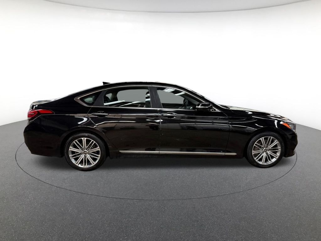 Option Group 01, 30 day Warranty, 12-Way Power Heated Front Bucket Seats, 18" Alloy Wheels, 4-Wheel Disc Brakes, 7 Speakers, ABS brakes, Air Conditioning, Alloy wheels, AM/FM radio: SiriusXM, Android Auto & Apple CarPlay, Anti-whiplash front head restraints, Auto High-beam Headlights, Auto tilt-away steering wheel, Auto-dimming door mirrors, Auto-dimming Rear-View mirror, Automatic temperature control, Bodyside moldings, Brake assist, Bumpers: body-color, Carpeted Floor Mats, CD player, Compass, Delay-off headlights, Driver door bin, Driver vanity mirror, Dual front impact airbags, Dual front side impact airbags, Electronic Stability Control, Emergency communication system: Genesis Connected Services, Exterior Parking Camera Rear, Four wheel independent suspension, Front anti-roll bar, Front Bucket Seats, Front Center Armrest, Front dual zone A/C, Front reading lights, Fully automatic headlights, Garage door transmitter: HomeLink, Heated door mirrors, Heated front seats, High intensity discharge headlights: Bi-Xenon, Illuminated entry, Knee airbag, Leather Seating Surfaces, Leather Shift Knob, Leather steering wheel, Low tire pressure warning, Memory seat, Navigation System, Occupant sensing airbag, Outside temperature display, Overhead airbag, Overhead console, Panic alarm, Passenger door bin, Passenger vanity mirror, Power door mirrors, Power driver seat, Power passenger seat, Power steering, Power windows, Radio data system, Radio: AM/FM/XM/HD/CD/MP3 Audio System, Rain sensing wipers, Rear anti-roll bar, Rear reading lights, Rear seat center armrest, Rear side impact airbag, Rear window defroster, Remote keyless entry, Reversible Cargo Tray, Security system, Speed control, Speed-sensing steering, Speed-Sensitive Wipers, Steering wheel memory, Steering wheel mounted audio controls, Tachometer, Telescoping steering wheel, Tilt steering wheel, Traction control, Trip computer, Turn signal indicator mirrors, and Variably intermittent wipers.
