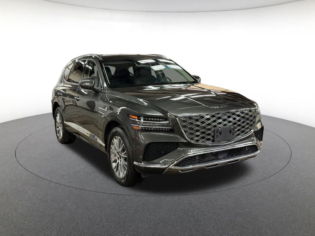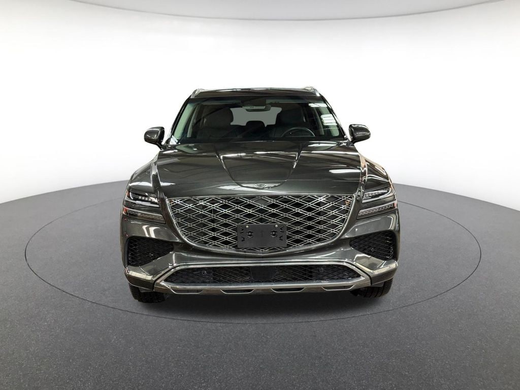Option Group 01, Balance of Factory Warranty, 12 Speakers, 4-Wheel Disc Brakes, ABS brakes, Air Conditioning, Alloy wheels, AM/FM radio: SiriusXM, Anti-whiplash front head restraints, Auto High-beam Headlights, Auto tilt-away steering wheel, Auto-dimming door mirrors, Auto-dimming Rear-View mirror, Auto-leveling suspension, Automatic temperature control, Brake assist, Bumpers: body-color, Compass, Delay-off headlights, Driver door bin, Driver vanity mirror, Dual front impact airbags, Dual front side impact airbags, Electronic Stability Control, Emergency communication system: Genesis Connected Services, Exterior Parking Camera Rear, Four wheel independent suspension, Front anti-roll bar, Front Bucket Seats, Front Center Armrest, Front dual zone A/C, Front reading lights, Fully automatic headlights, Garage door transmitter: HomeLink, Heated door mirrors, Heated Front Bucket Seats, Heated front seats, Illuminated entry, Knee airbag, Leather steering wheel, Leatherette Seating Surfaces, Low tire pressure warning, Memory seat, Navigation System, Occupant sensing airbag, Outside temperature display, Overhead airbag, Overhead console, Panic alarm, Passenger door bin, Passenger vanity mirror, Power door mirrors, Power driver seat, Power Liftgate, Power passenger seat, Power steering, Power windows, Radio data system, Radio: AM/FM/SiriusXM/HD, Rain sensing wipers, Rear air conditioning, Rear anti-roll bar, Rear reading lights, Rear seat center armrest, Rear side impact airbag, Rear window defroster, Rear window wiper, Remote keyless entry, Security system, Speed control, Speed-sensing steering, Speed-Sensitive Wipers, Split folding rear seat, Spoiler, Steering wheel memory, Steering wheel mounted audio controls, Tachometer, Telescoping steering wheel, Tilt steering wheel, Traction control, Trip computer, Turn signal indicator mirrors, Variably intermittent wipers, and Wheels: 19" x 8.5J Medium Metallic Gray Alloy.