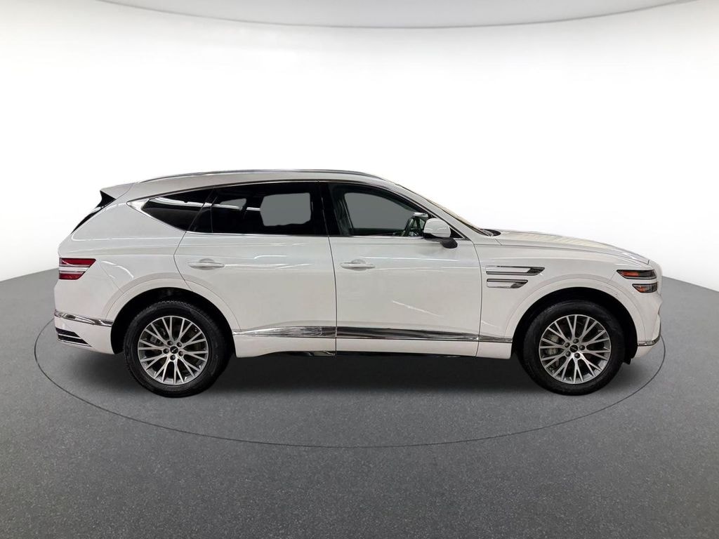 Option Group 01, Balance of Factory Warranty, 12 Speakers, 4-Wheel Disc Brakes, ABS brakes, Air Conditioning, Alloy wheels, AM/FM radio: SiriusXM, Anti-whiplash front head restraints, Auto High-beam Headlights, Auto tilt-away steering wheel, Auto-dimming door mirrors, Auto-dimming Rear-View mirror, Auto-leveling suspension, Automatic temperature control, Brake assist, Bumpers: body-color, Compass, Delay-off headlights, Driver door bin, Driver vanity mirror, Dual front impact airbags, Dual front side impact airbags, Electronic Stability Control, Emergency communication system: Genesis Connected Services, Exterior Parking Camera Rear, Four wheel independent suspension, Front anti-roll bar, Front Bucket Seats, Front Center Armrest, Front dual zone A/C, Front reading lights, Fully automatic headlights, Garage door transmitter: HomeLink, Heated door mirrors, Heated Front Bucket Seats, Heated front seats, Illuminated entry, Knee airbag, Leather steering wheel, Leatherette Seating Surfaces, Low tire pressure warning, Memory seat, Navigation System, Occupant sensing airbag, Outside temperature display, Overhead airbag, Overhead console, Panic alarm, Passenger door bin, Passenger vanity mirror, Power door mirrors, Power driver seat, Power Liftgate, Power passenger seat, Power steering, Power windows, Radio data system, Radio: AM/FM/SiriusXM/HD, Rain sensing wipers, Rear air conditioning, Rear anti-roll bar, Rear reading lights, Rear seat center armrest, Rear side impact airbag, Rear window defroster, Rear window wiper, Remote keyless entry, Security system, Speed control, Speed-sensing steering, Speed-Sensitive Wipers, Split folding rear seat, Spoiler, Steering wheel memory, Steering wheel mounted audio controls, Tachometer, Telescoping steering wheel, Tilt steering wheel, Traction control, Trip computer, Turn signal indicator mirrors, Variably intermittent wipers, and Wheels: 19" x 8.5J Medium Metallic Gray Alloy.