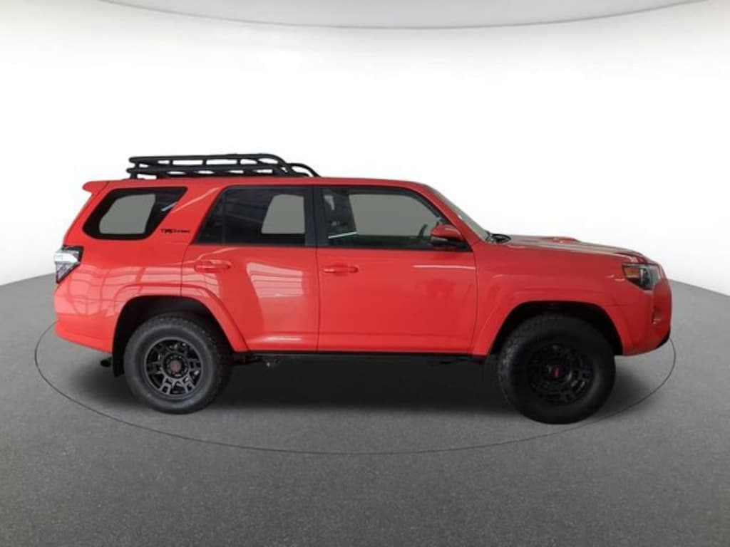 TRD Pro Package (Black Lug Nuts, Dual Zone Auto Climate Control, Fog Lights, Fox Shocks, Garage Door Opener, Heated Outside Rear-View Mirrors, Moonroof w/Tilt Up & Slide, Multi-Terrain Back Monitor, Roof Rack, TRD Pro All Weather Floor Liner, TRD Pro Badging, TRD Pro Exhaust, TRD Shift Knob, and Wheel Locks), Balance of Factory Warranty, 4WD, Black/Graphite w/Leather Seat Trim, AM/FM radio: SiriusXM, Apple CarPlay/Android Auto, Auto-dimming Rear-View mirror, Electronic Stability Control, Emergency communication system: Safety Connect (1-year trial), Front Center Armrest, Heated door mirrors, Heated front seats, Navigation System, Power driver seat, Power moonroof, Power passenger seat, Remote keyless entry, SofTex Seat Trim, 15 Speakers, 3.727 Axle Ratio, 4-Wheel Disc Brakes, ABS brakes, Air Conditioning, Alloy wheels, Anti-whiplash front head restraints, Auto High-beam Headlights, Automatic temperature control, Blackout Emblem Overlays (PPO) (TMS), Brake assist, Bumpers: body-color, Cargo Mat (PPO) (TMS), Cargo Tote (PPO) (TMS), Coin Holder/Ashtray Cup (PPO) (TMS), Compass, Console Safe (PPO) (TMS), CONTROL, Cruise Control, Dashcam (PPO) (TMS), Door Edge Guards (PPO) (TMS), Driver door bin, Driver vanity mirror, Dual front impact airbags, Dual front side impact airbags, Emergency Assistance Kit (PPO) (TMS), Front anti-roll bar, Front Bucket Seats, Front Dual USB Power Port Charger (TMS), Front fog lights, Front reading lights, Front wheel independent suspension, Garage door transmitter: HomeLink, Heated Front Bucket Seats, Hitch Ball Mount (PPO) (TMS), Illuminated entry, Knee airbag, Leather Shift Knob, Low tire pressure warning, Occupant sensing airbag, Outside temperature display, Overhead airbag, Overhead console, Paint Protection Film (PPO) (TMS), Panic alarm, Passenger door bin, Passenger vanity mirror, Power door mirrors, Power steering, POWER WINDOWS, power windows, Quick Charge Cable (PPO) (TMS), Radio: Premium Audio w/JBL, Rear anti-roll bar, Rear seat center armrest, Rear window defroster, Rear window wiper, Roof rack, Security system, Speed-sensing steering, Split folding rear seat, Spoiler, Tachometer, Telescoping steering wheel, Tilt steering wheel, Traction control, TRD PRO Carpet Floor Mats (PPO) (TMS), Trip computer, Universal Tablet Holder (PPO) (TMS), Variably intermittent wipers, and Wheels: 17" Matte Black Flow-Formed TRD Alloy.